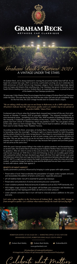 In their pursuit of the perfect bubble, Graham Beck raises the bar in terms of quality and distinction, and has established themselves as one of the world’s leading sparkling wine brands, devoted to quality and consistency.