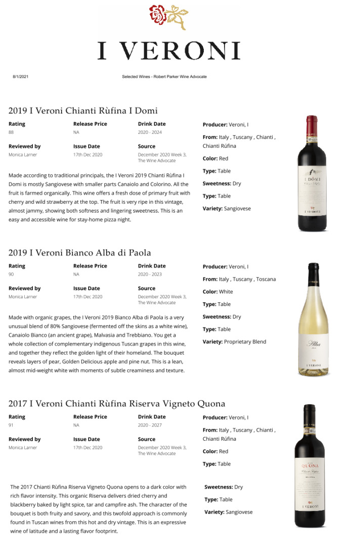 Fattoria I Veroni's history dates back to the Middle Ages in the Arno Valley and has transformed over centuries. I Veroni now has a dynamic range of three distinct Chianti Rufina wines which are true to the authentic character of the Sangiovese- Rufina tradition and four IGT wines.